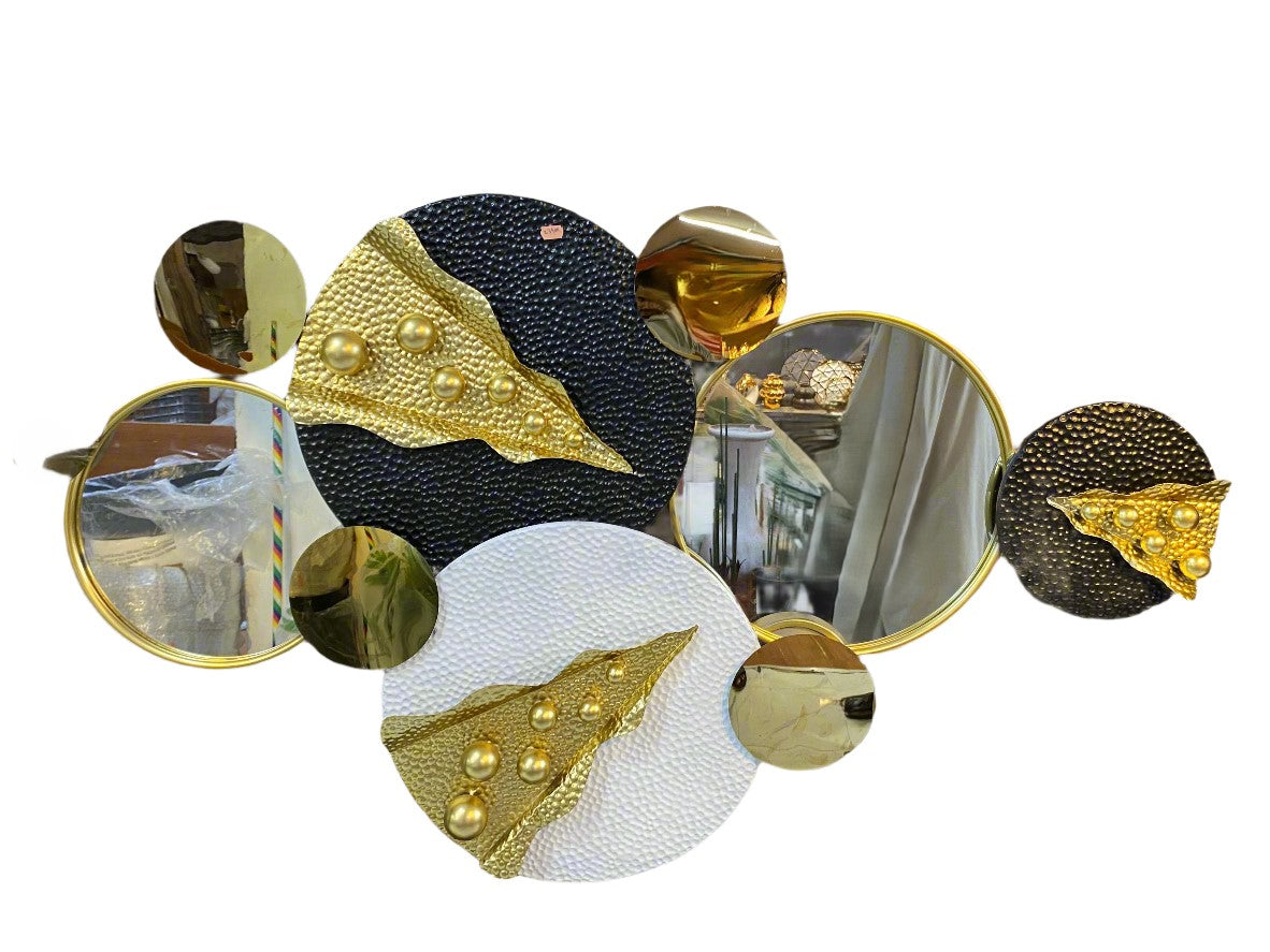 - A stunning arrangement of circular mirrors and decorative elements, perfect for adding a touch of sophistication to any room.