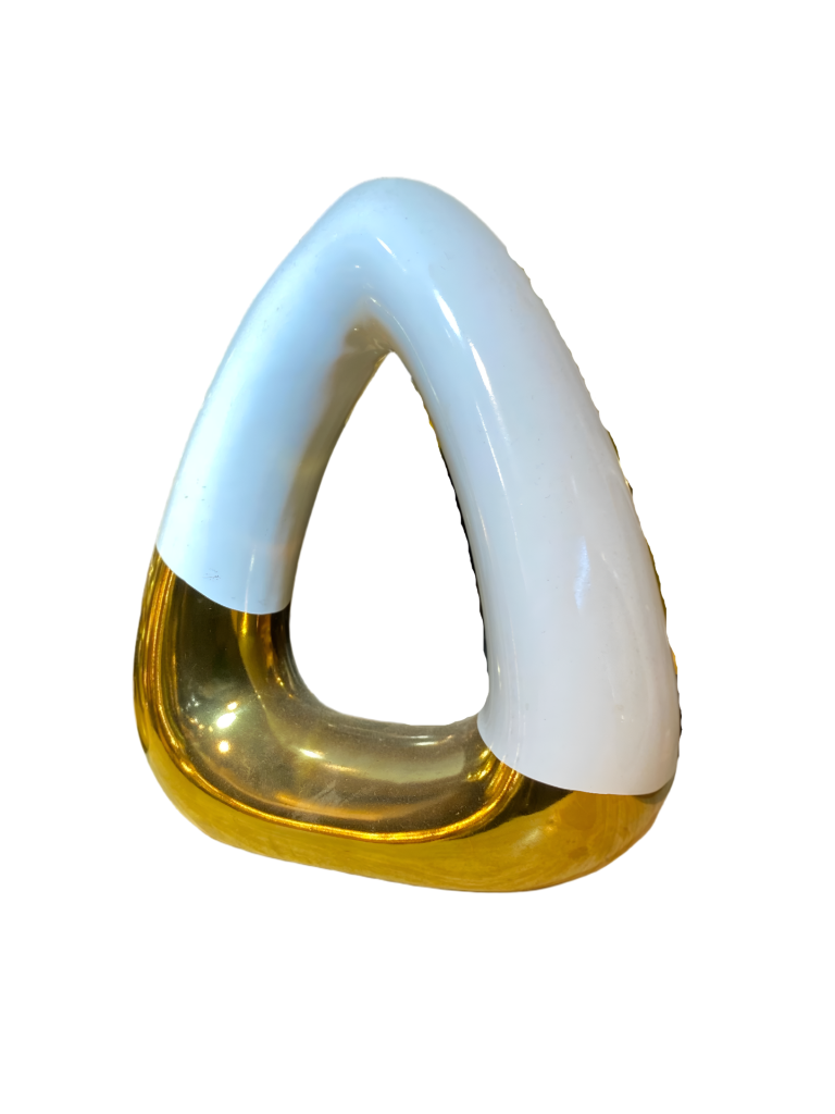 - A stylish and modern decorative piece with a triangular shape and rounded edges.